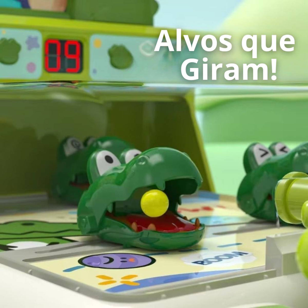 O objetivo é simples e empolgante: lançar as bolinhas, acertar os crocodilos e marcar pontos! Cada jogada exige atenção e rapidez, tornando a experiência ainda mais envolvente para as crianças.