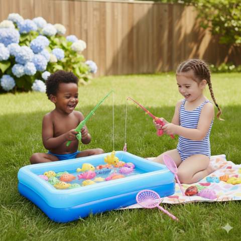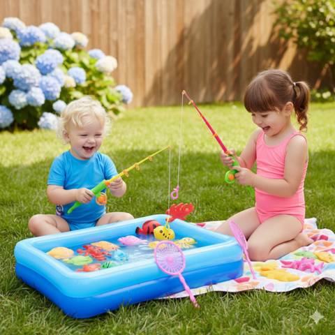 Ideal para criar um mini “lago” onde as crianças podem pescar com facilidade e muita diversão.