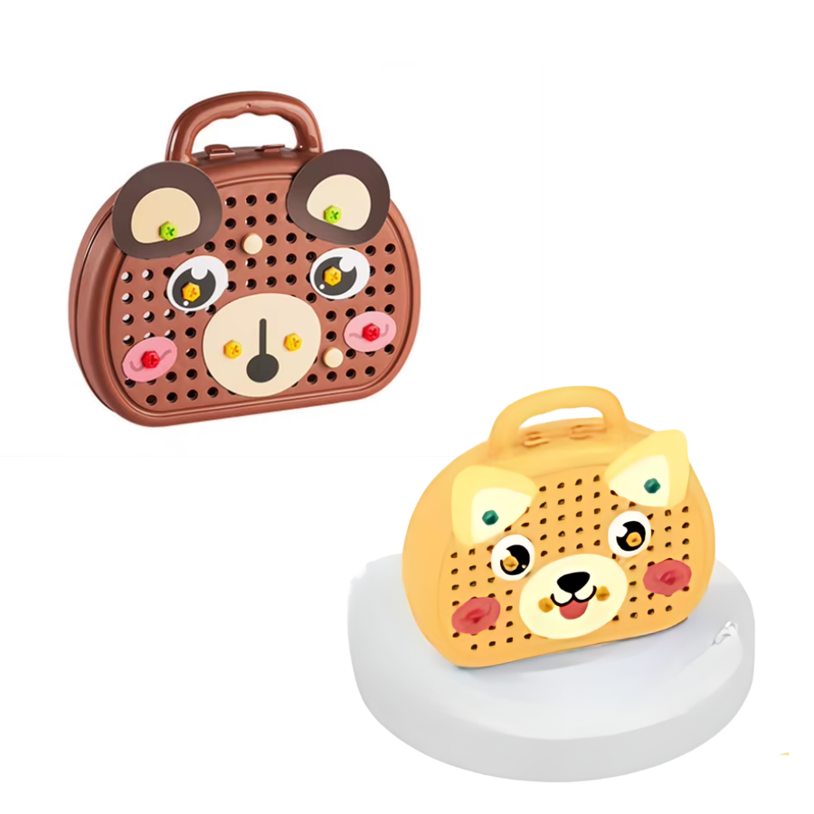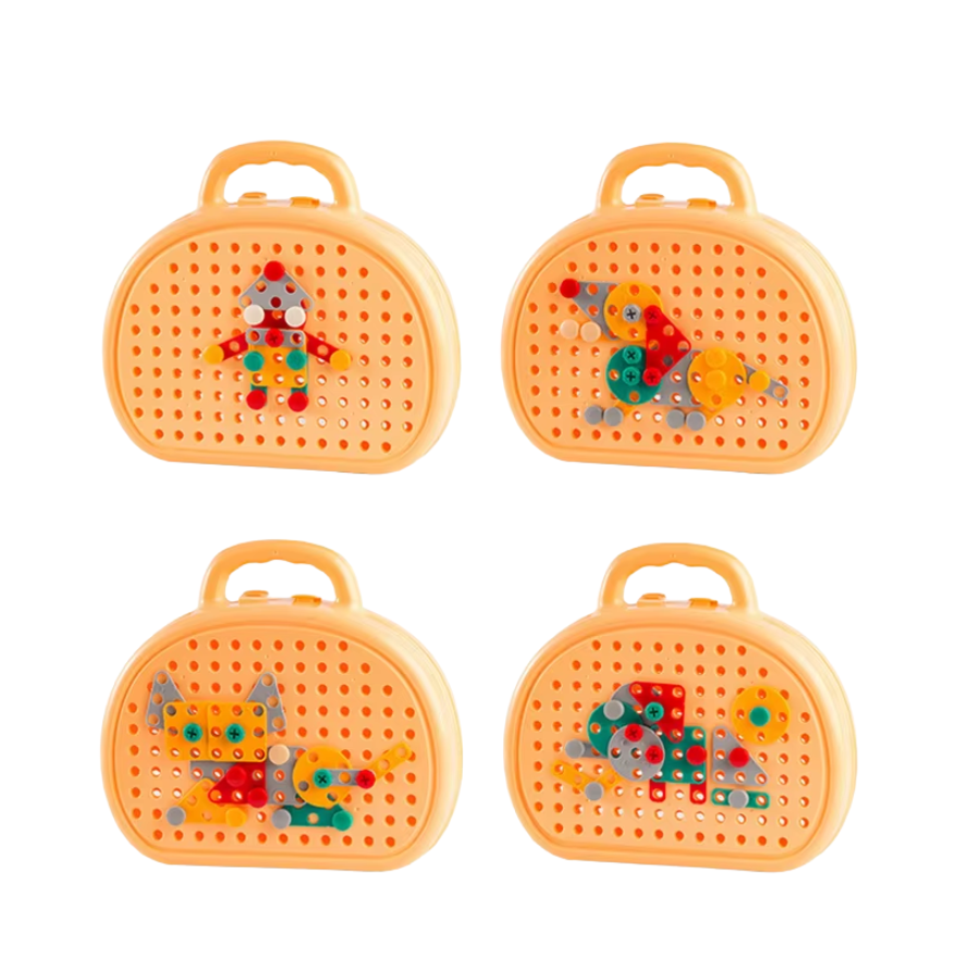 Transforme o momento de brincar em aprendizado com a Oficina Mágica Montessori — uma caixa de ferramentas lúdica que estimula a criatividade, a lógica e as habilidades manuais da criança.